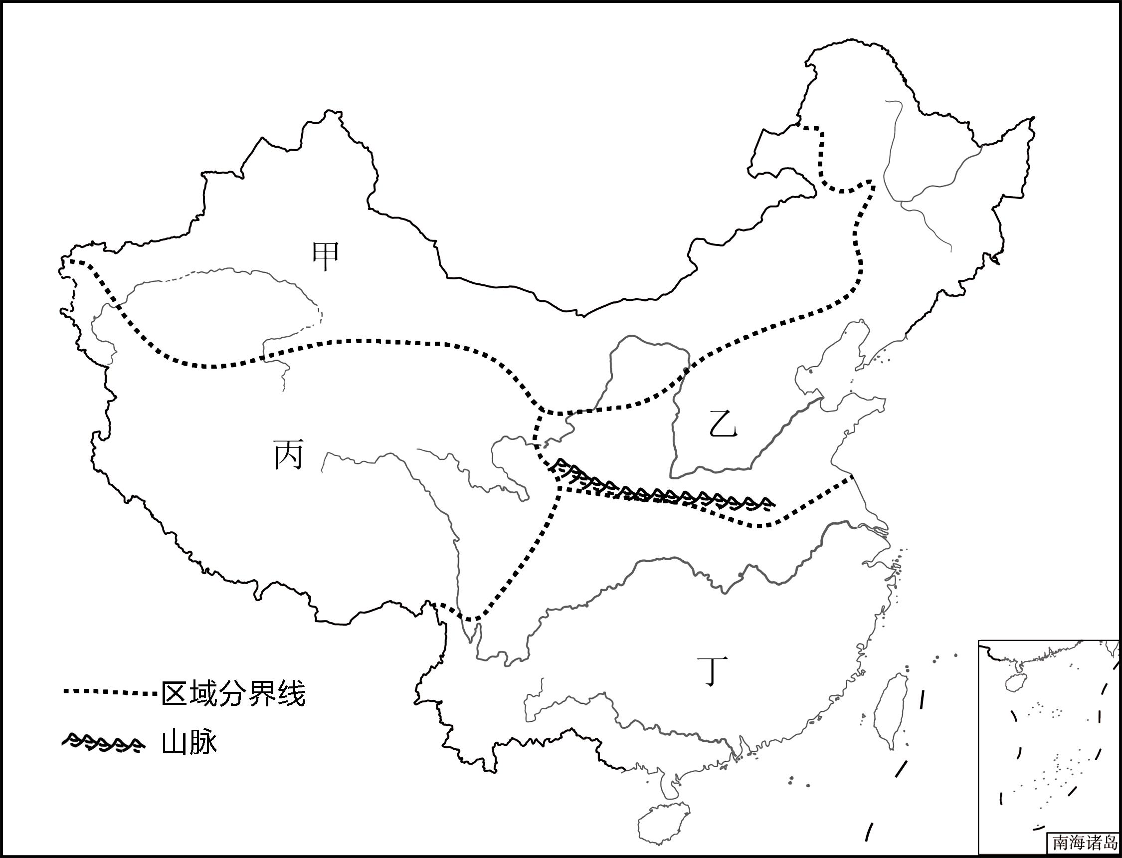 中国幅员辽阔,地域差异明显。读我国四大地理区域示意图(下图),完成下面小题。