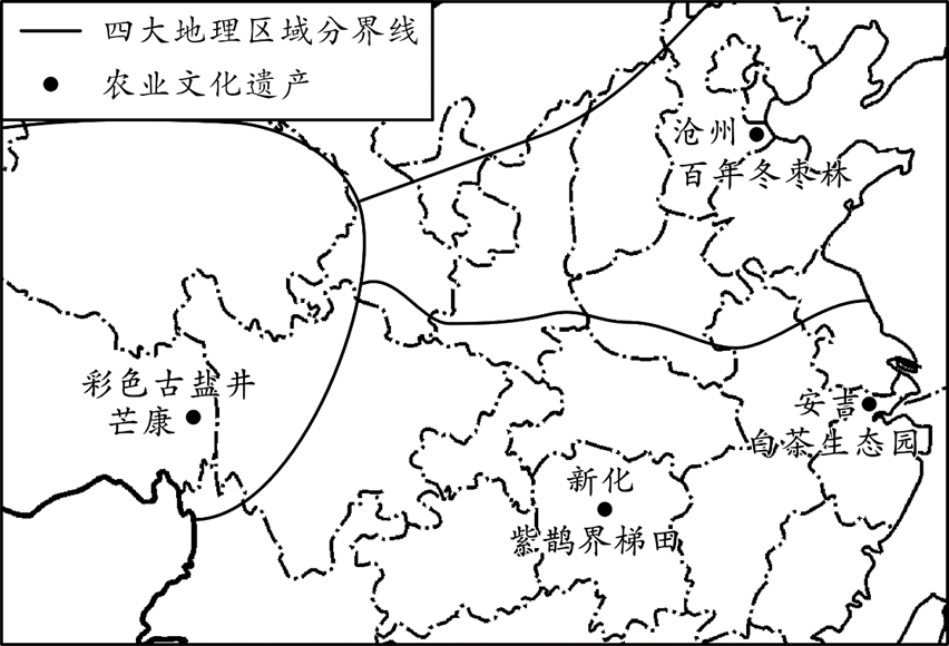 我国拥有丰富多样的文化遗产。下图示意部分农业文化遗产分布。据此完成下面小题。