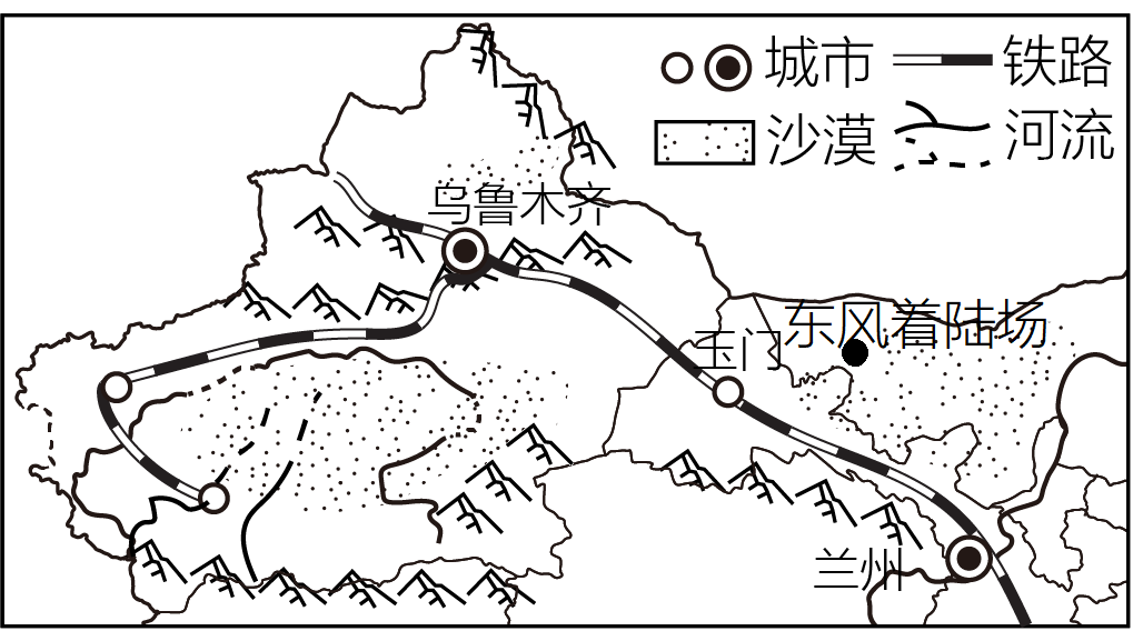 去年四月中旬,小陆与同学乘坐火车从兰州开始沿兰新线开启了西北研学之旅。下图是兰新线(局部)及其沿途景观图,读图完成下面小题。