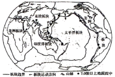 据中国地震台网数据统计,2024年全球共发生10次7.0级以上地震,其中最大的一次是日本本州西岸近海的7.4级地震。下图为2024年全球7.0级以上地震震中分布图。据此完成下面小题。