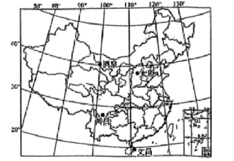 | A.(41°N,98°E) | B.(28°N,102°E) |