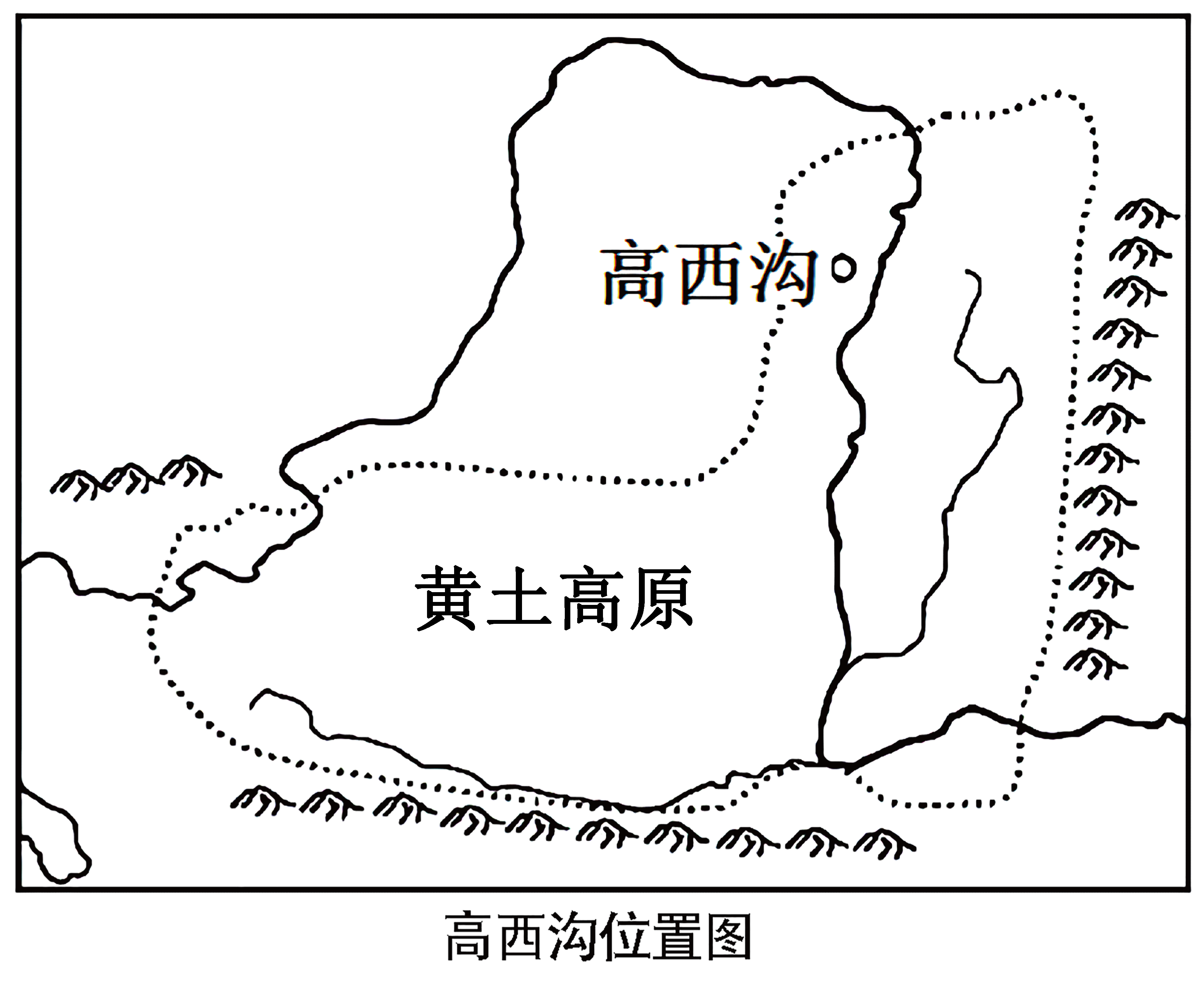 陕北高西沟当地信天游唱道:“雨涝流泥浆,冲成万条沟,肥土顺水流,籽苗连根丢。”20世纪60年代起,人们在山顶植松树,荒坡种柠条,沟谷栽果树。经过几十年治理,高西沟已变成青山绿水。下图为“高西沟位置图”,读图,完成下面小题。