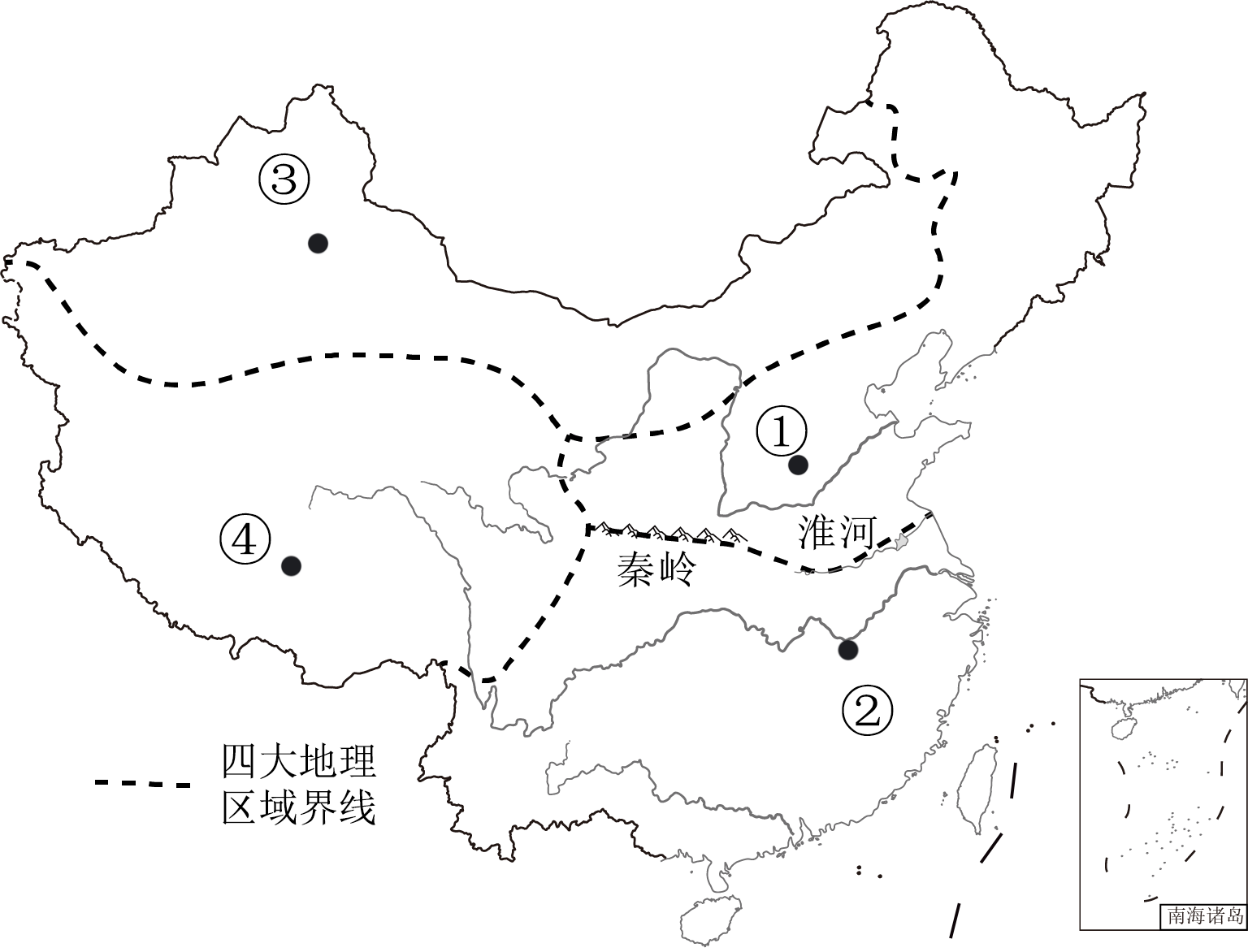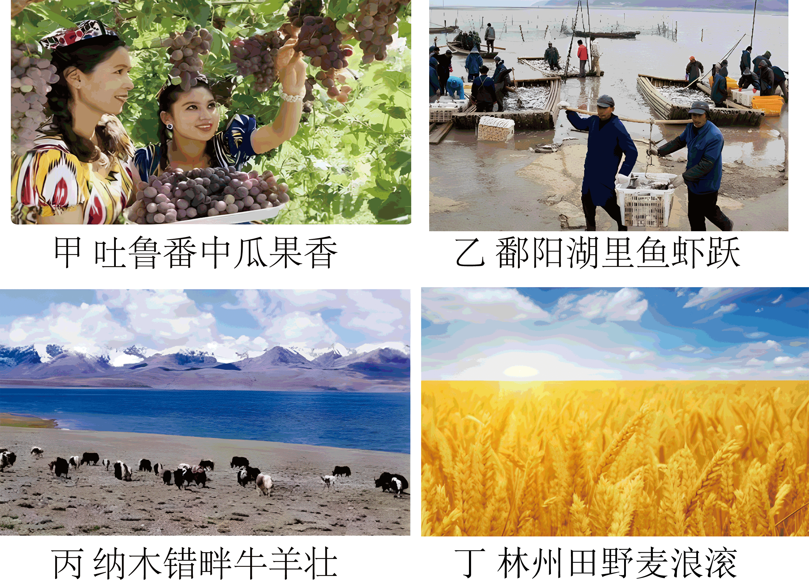 国以农为本,民以食为天。自2018年起,我国将每年的秋分设为“中国农民丰收节”。下图为农业生产场景及中国四大地理区域图。读图,完成下面小题。