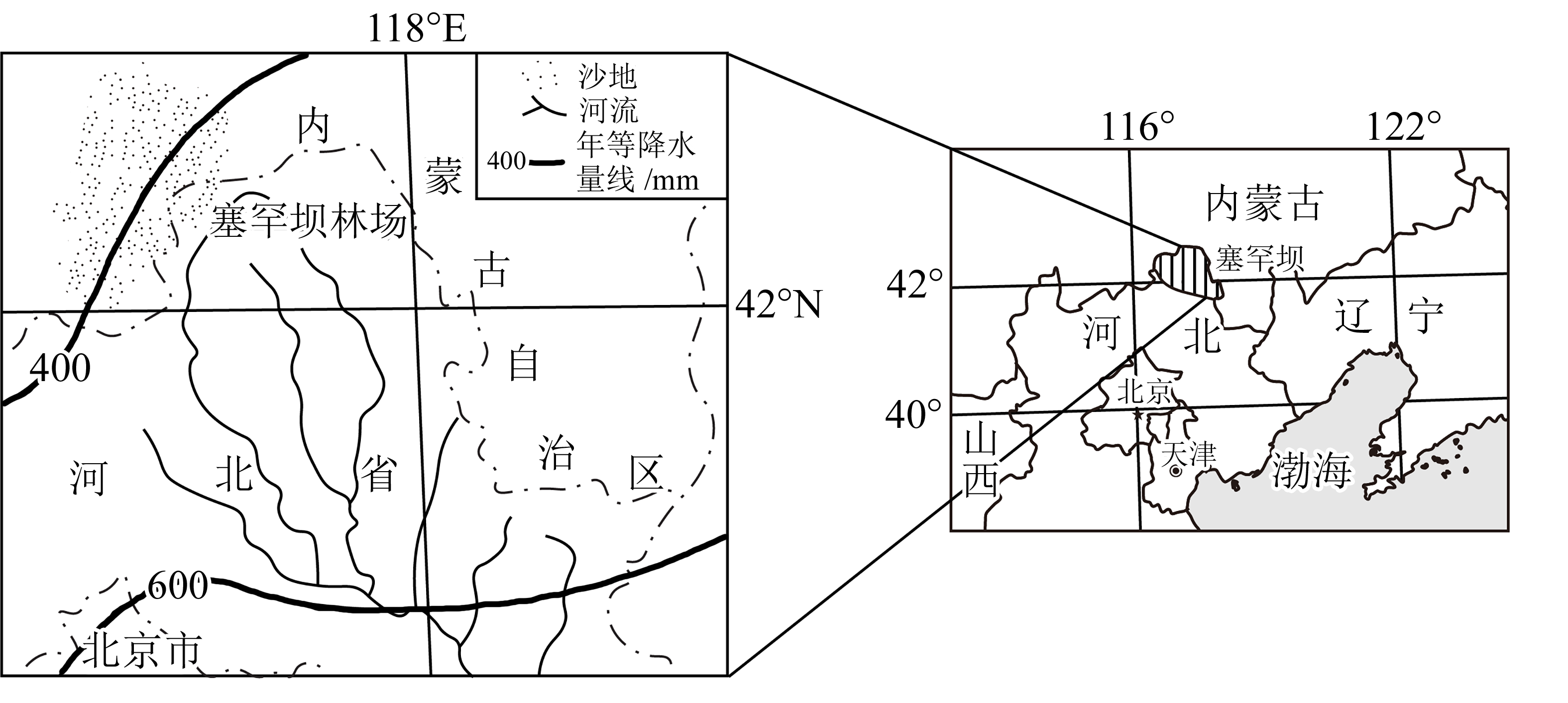 塞罕坝曾是“飞鸟无栖树,黄沙满天飞”的荒原沙地。新中国成立以后,塞罕坝人创造了绿色奇迹,建成了世界上最大的人工林生态系统。读塞罕坝林场分布图,完成下面小题。