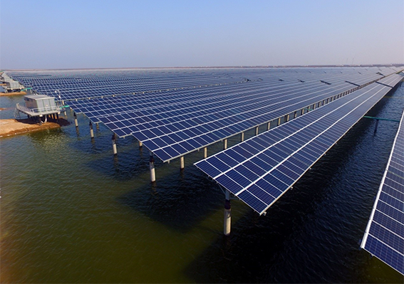 “渔光互补”发电新模式是在水面上架设太阳能电池板发电,水域用于水产养殖,实现“一地两用”,因地制宜发展经济。下图为我国某地“渔光互补”光伏电站景观图。完成下面小题。