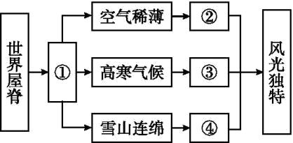 某中学地理学习小组绘制了一幅框图,解释某地形区自然地理要素的相互作用与影响。据完成下面小题。