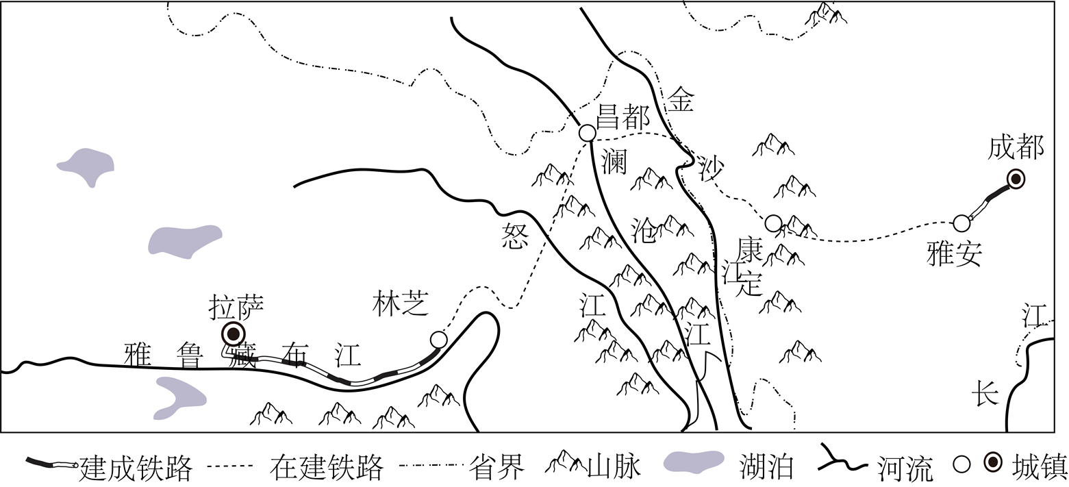 川藏铁路东起成都,西至拉萨,是我国第二条进藏铁路。川藏铁路穿越区生态环境脆弱、气候恶劣、地形地质条件极其复杂,全线桥隧比高达81%,被称为“最难修建的铁路”。图为川藏铁路示意图。据此完成下面小题。