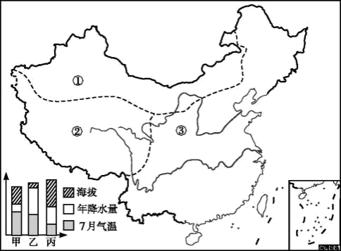 根据自然地理差异,也可将我国划分为三大自然地理区域。读图,完成下面小题。