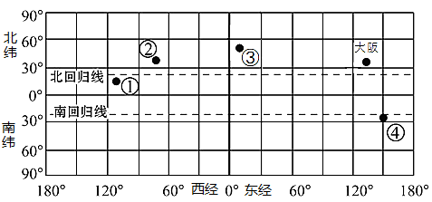 | A.都在北半球 | B.都位于中纬度 | C.①纬度最低 | D.③在西半球 |