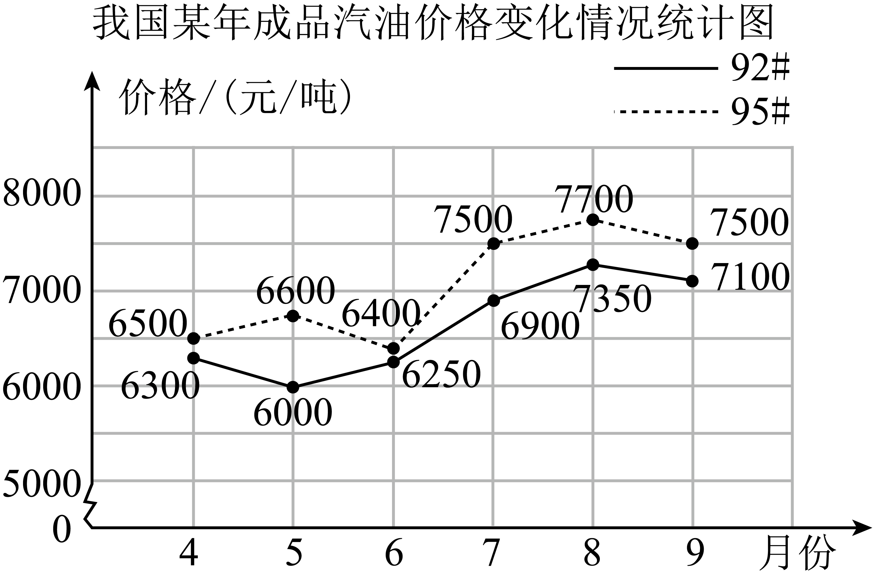 下面是我国某年成品汽油价格变化情况统计图。