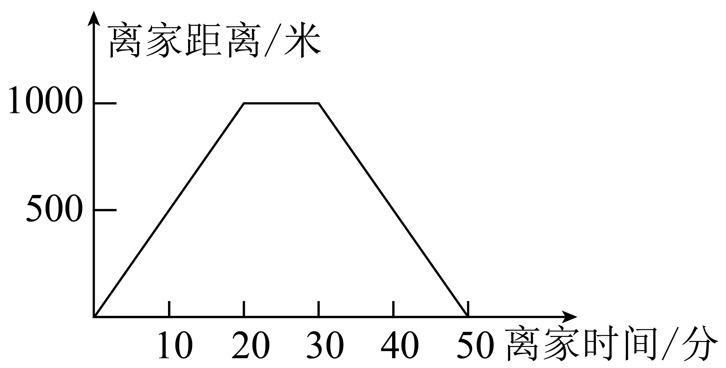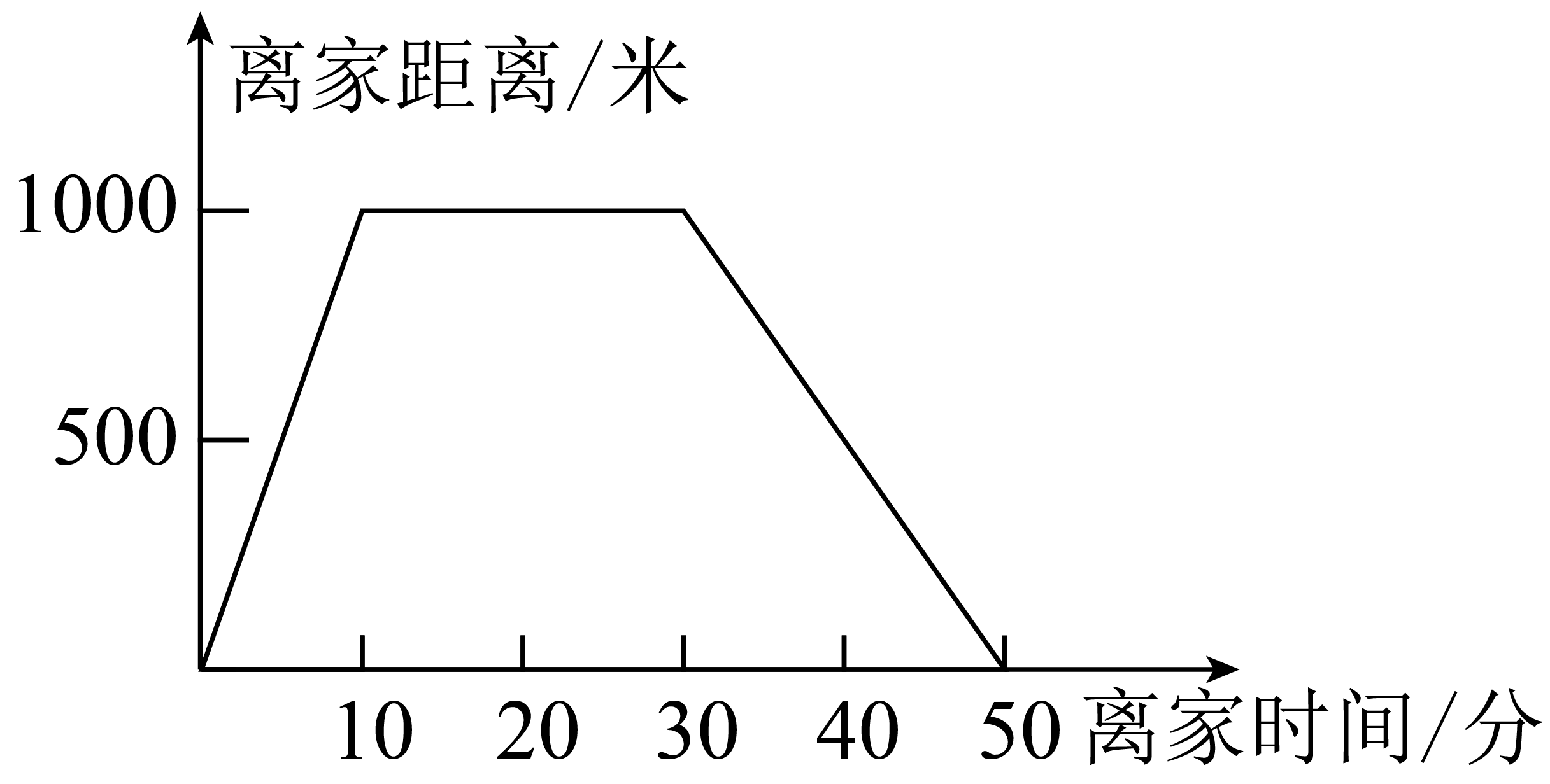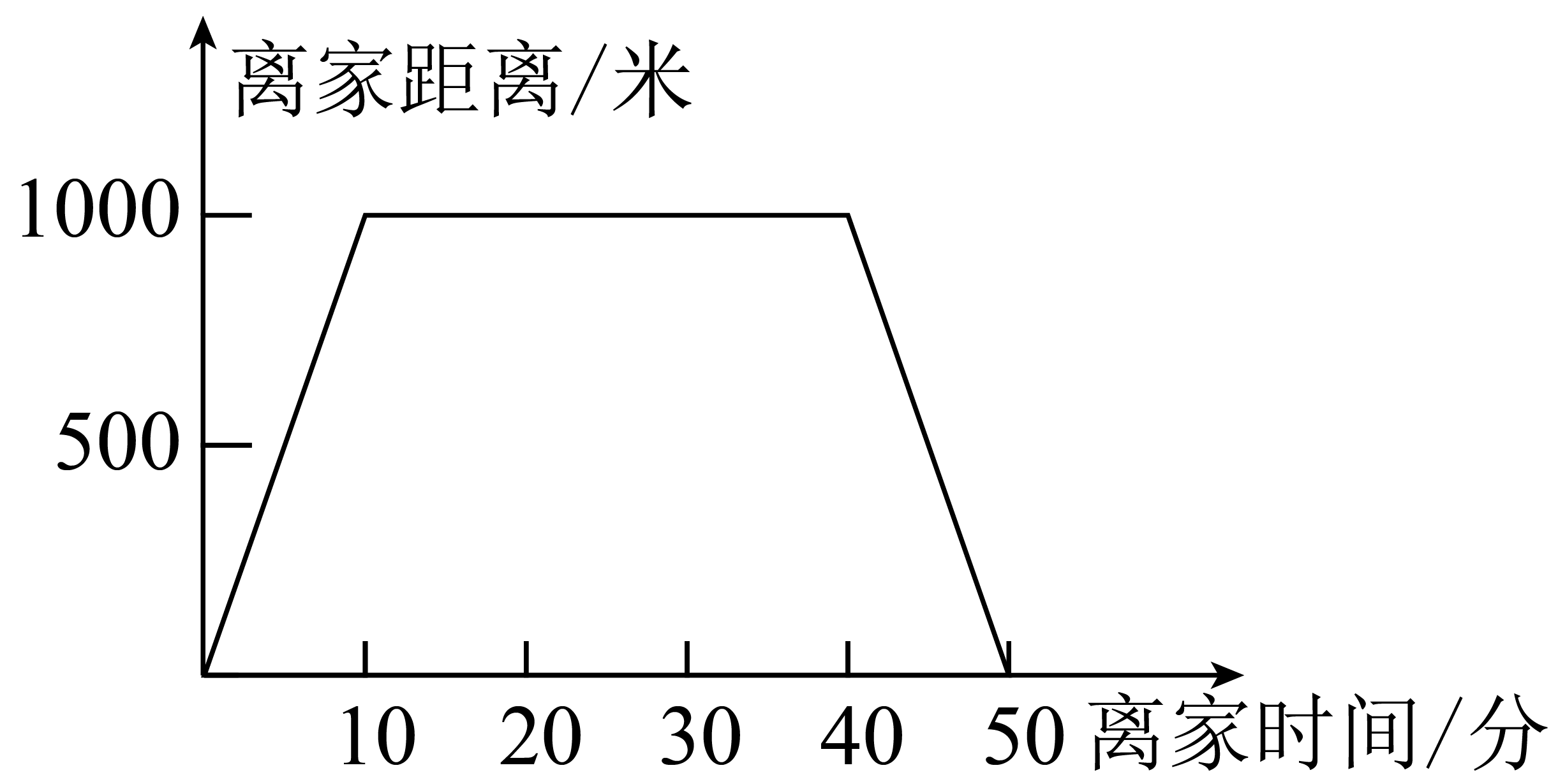 爸爸到离家1000m远的体育馆锻炼身体,他到体育馆用时10分钟,在体育馆运动了30分钟,最后从体育馆回到家又用了10分钟,下面图(