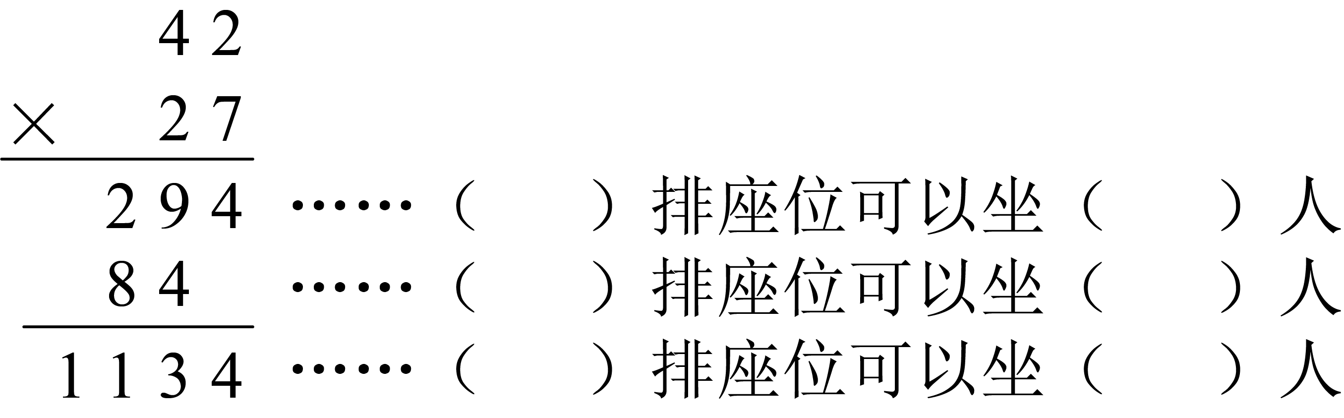 会议室共有27排座位,每排可坐42人。根据下面的竖式,在括号里填合适的数。