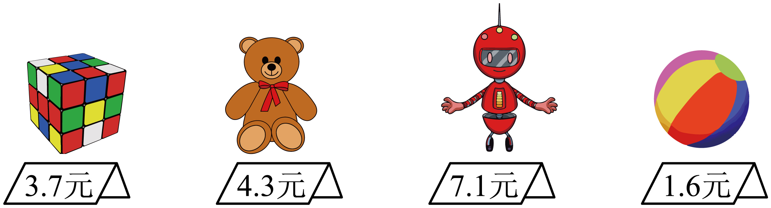 从上边选两样自己喜欢的玩具,算算一共需要多少钱?